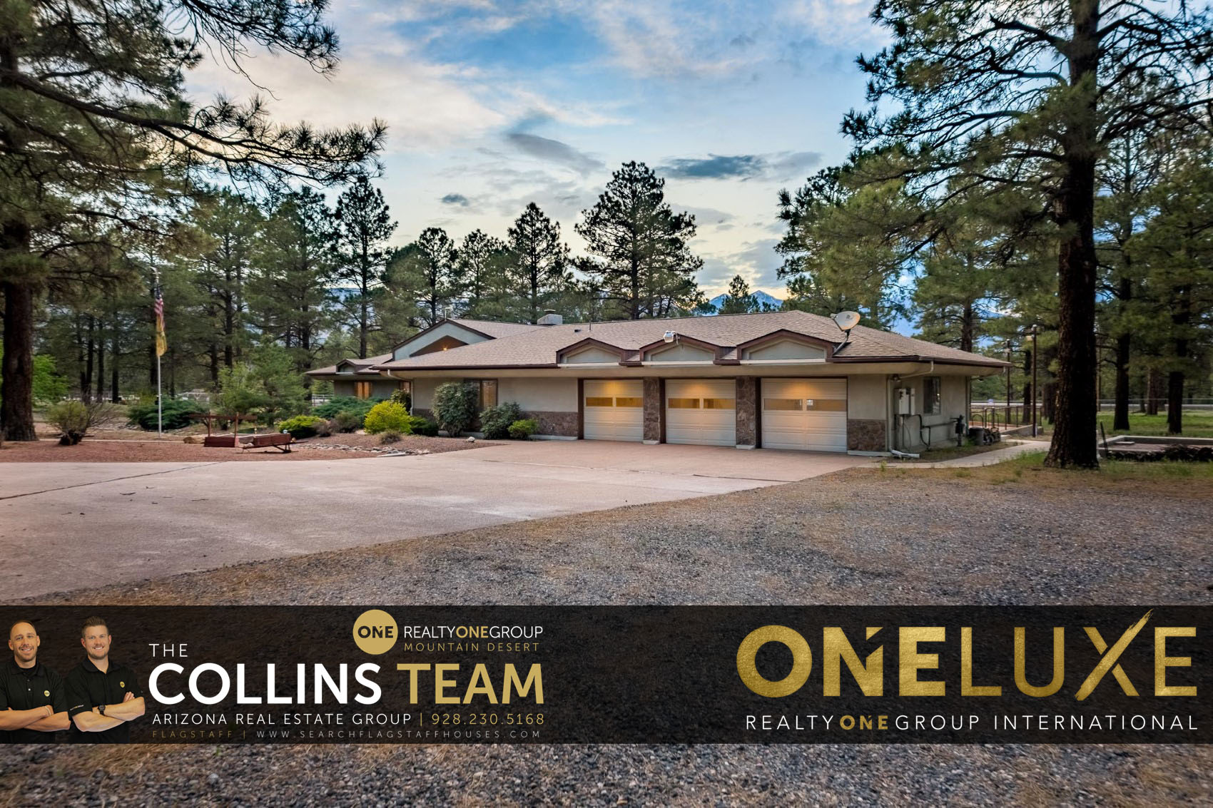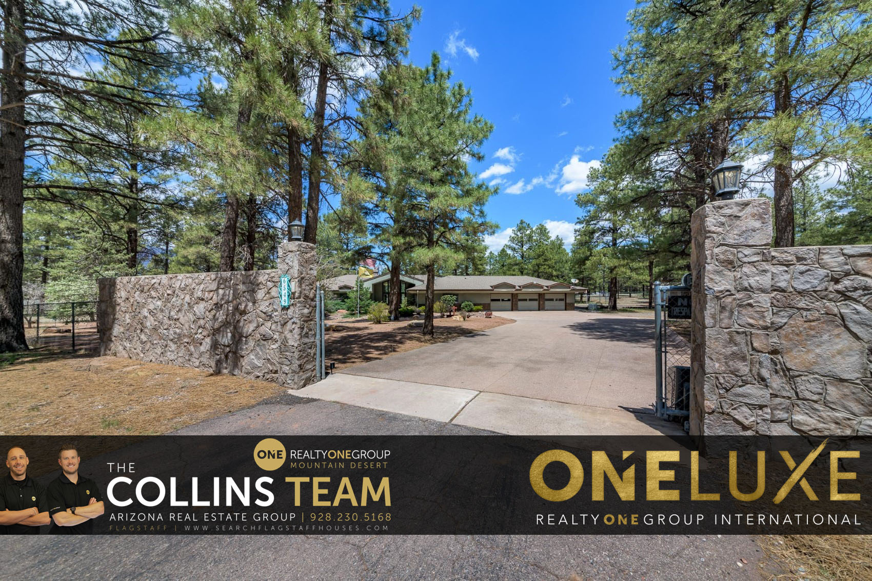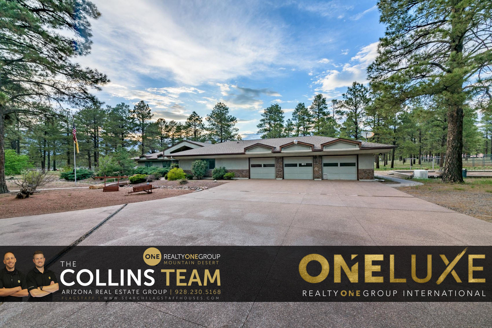 Take a look at this completely unique Flagstaff custom built home on almost 5 heavily treed acres (4.88). This fully fenced property is equipped with two gate entrances (one of which is electric), natural gas, private water (Doney Park water) plus TWO backup generators for both the home and the massive RV garage. Some other awesome features include a three car garage, formal dining area + breakfast nook, open concept with a bonus family room with amazing fireplace. Outside you’ll find a covered pavilion with grill station, concrete pad with basketball hoop and more space & trees than you’ll know what to do with. Unlimited potential with this unique, spacious and immaculately maintained home & property. Call The COLLINS TEAM today @ 928-499-3686 to learn more!